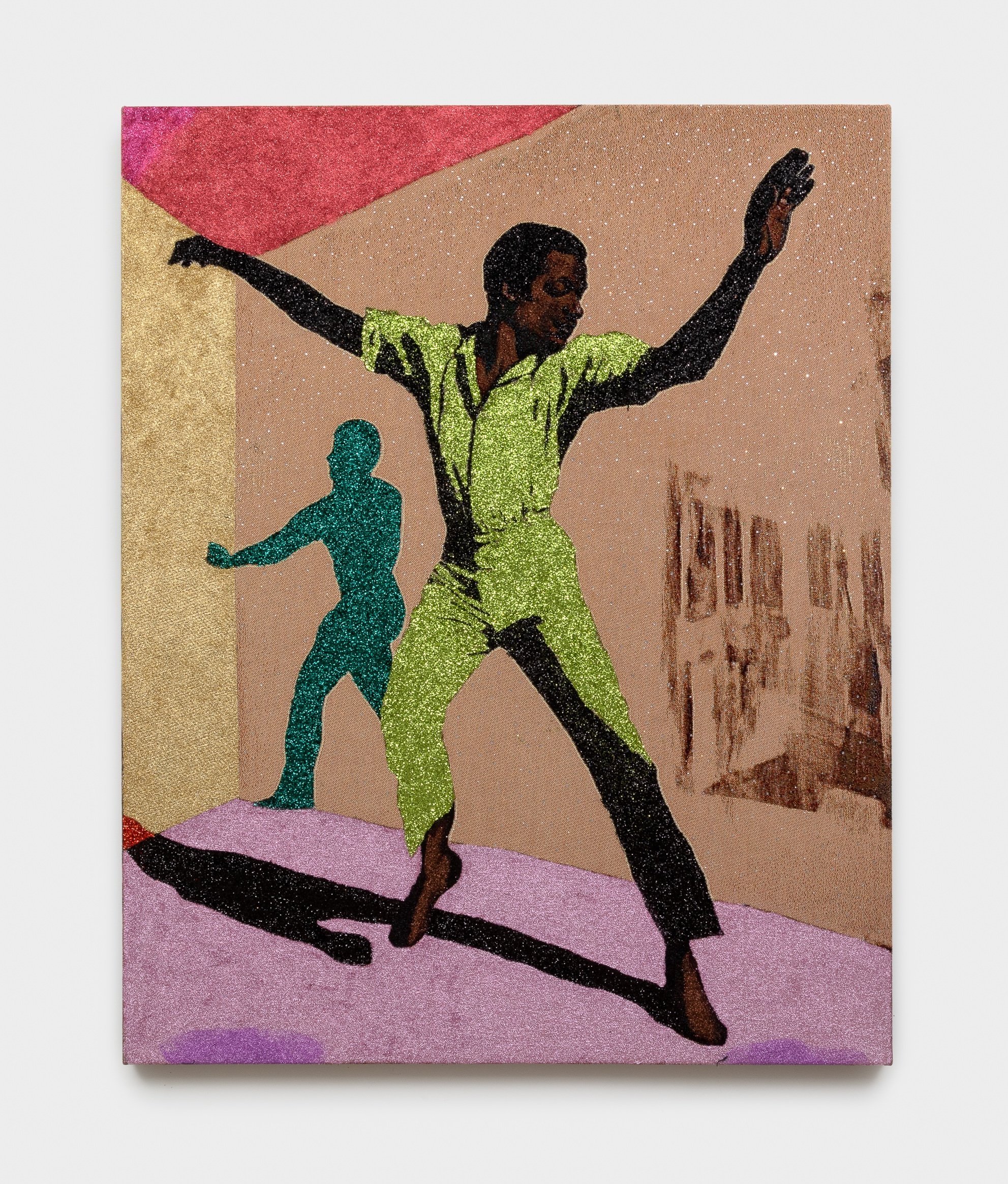 AKEA BRIONNE Dance to Remember, 2025, Jacquard on canvas, glitter, rhinestones, poly-fil, adhesive, cotton thread, 60 x 48 inches.